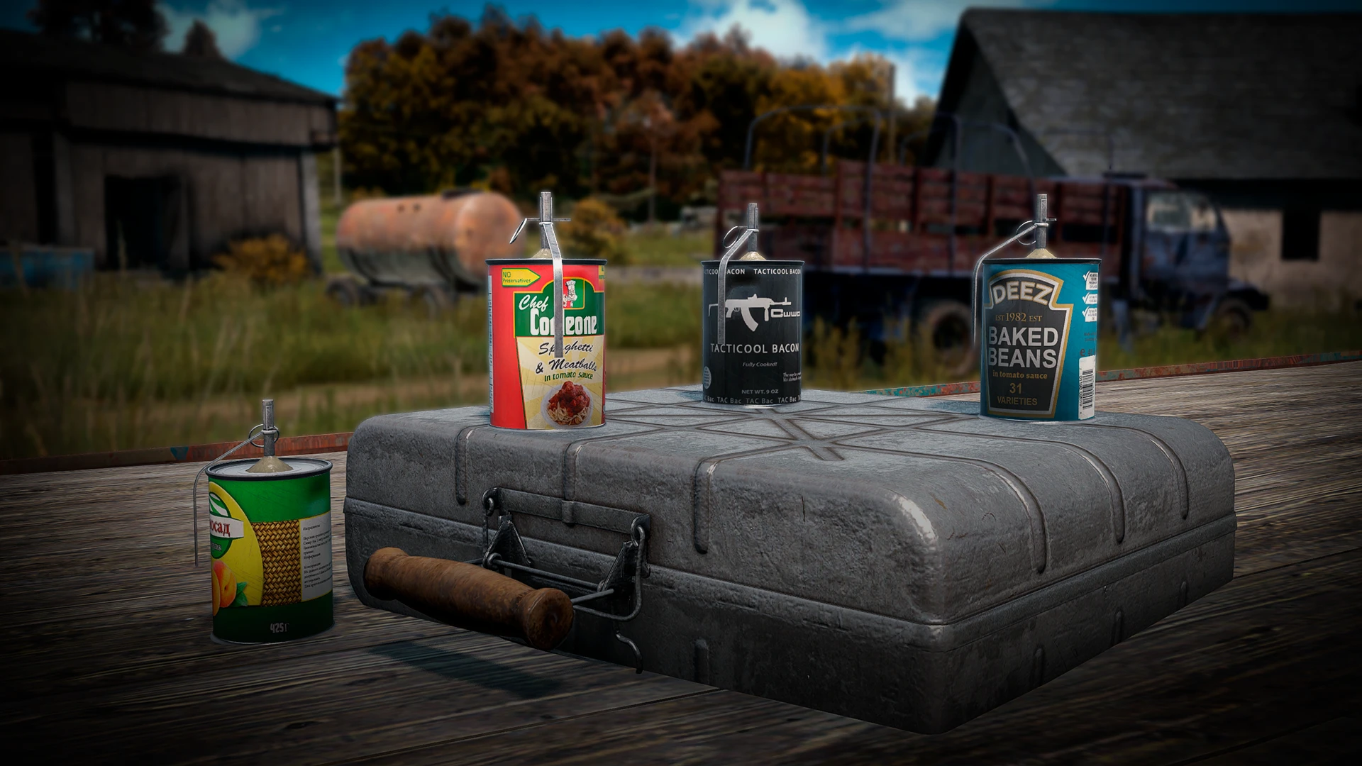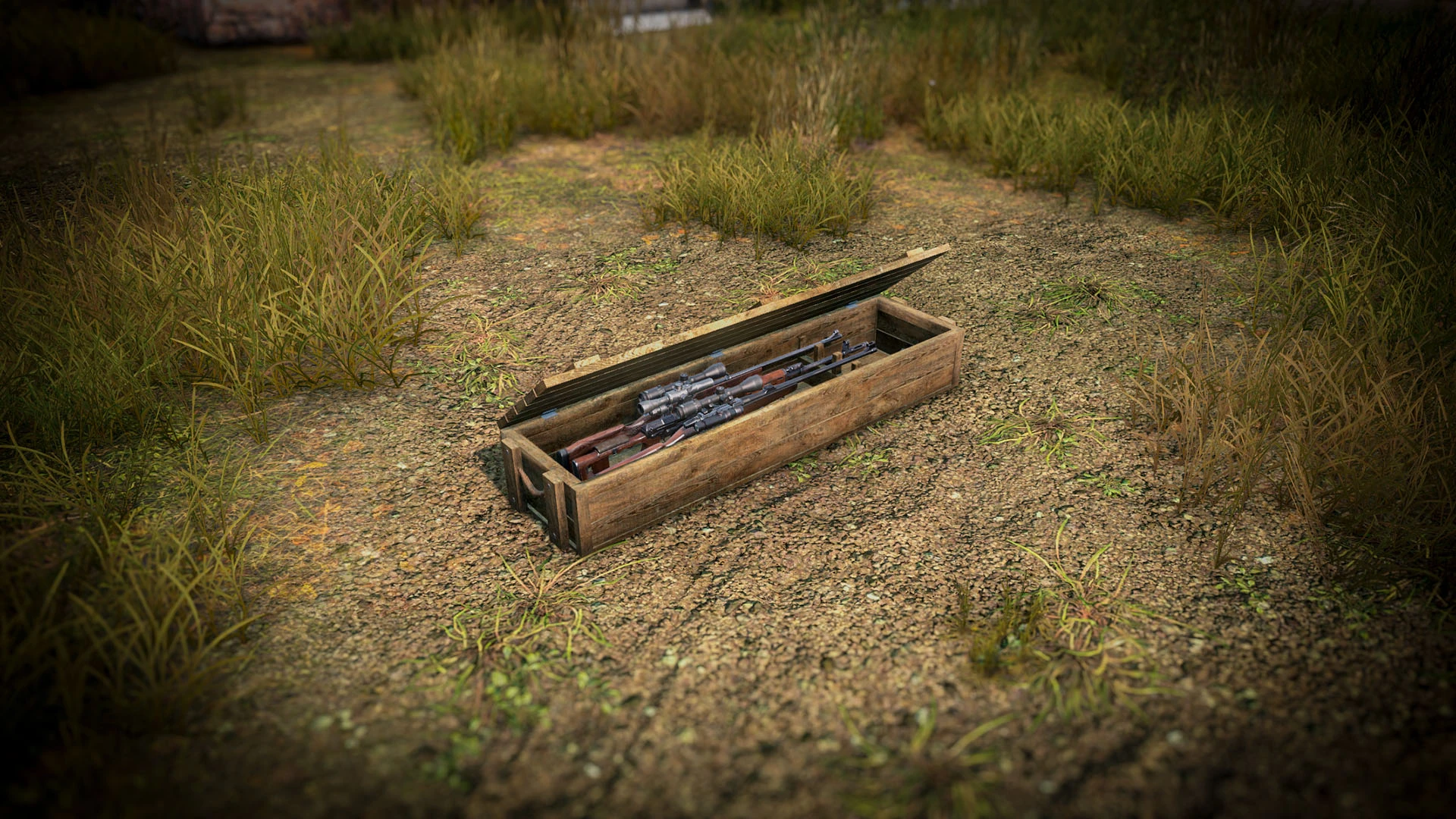 В кейсе Вы можете найти весьма широкий спектр снаряжения, от одежды и оружия, до патронов и материалов для строительства.